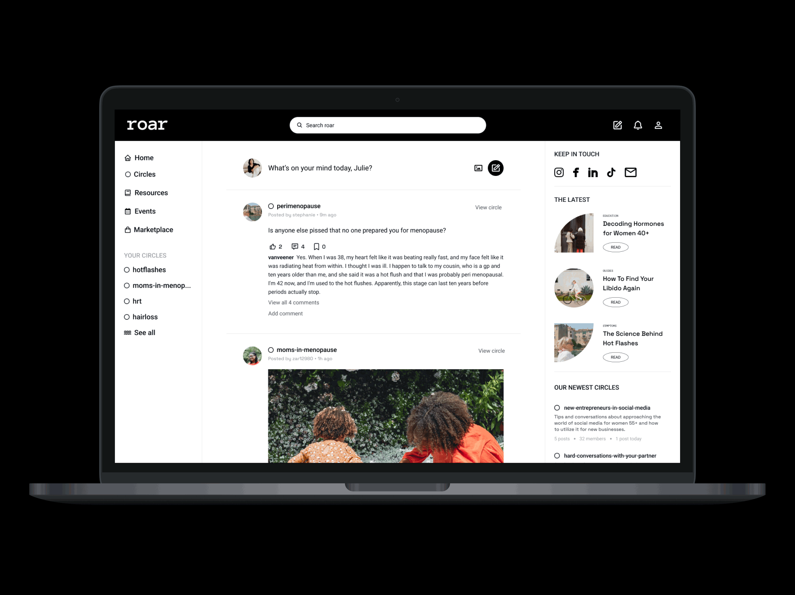 Roar is a community-driven women's health platform designed to give women a trusted, personalized space to connect, share experiences, and build their own health journey, starting with menopause. It grew out of a real gap: when one of our co-founders went through menopause, there was nowhere to go for honest, peer-grounded information. Doctors gave clinical answers. Friends gave conflicting opinions. The internet gave anxiety. Roar was the platform she wished had existed.